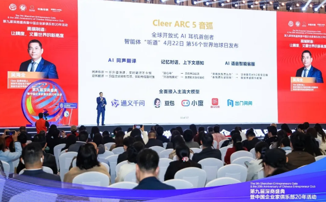 演讲的核心部分,吴海全聚焦于旗下全球品牌Cleer的创新发展故事。他直言,在AI时代,耳机早已超越“听音乐、打电话”的传统范畴,进化为个人的智能伴侣。Cleer品牌正是这一趋势的引领者:它是全球开放式AI耳机的首创者,也是首个获得碳中和认证的零碳耳机品牌。
